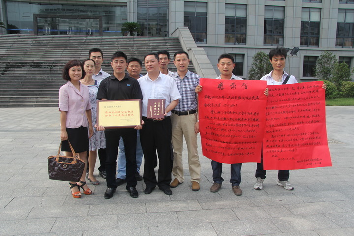 2013年,边晓斌收到企业工人的感谢信和纪念牌。(仪征市人民法院供图)