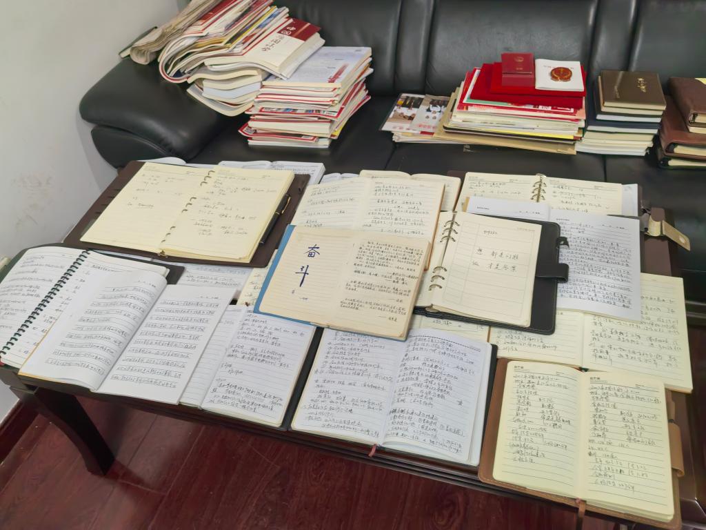 边晓斌生前工作时使用的笔记本。新华社记者郑生竹 摄