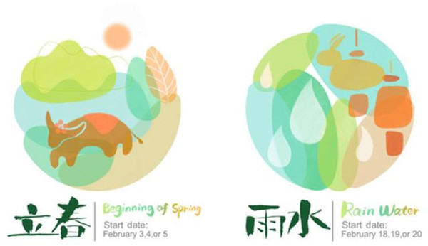 Images representing different solar terms, such as cattle and raindrops, are used in Shao's designs. [zjol.com.cn]