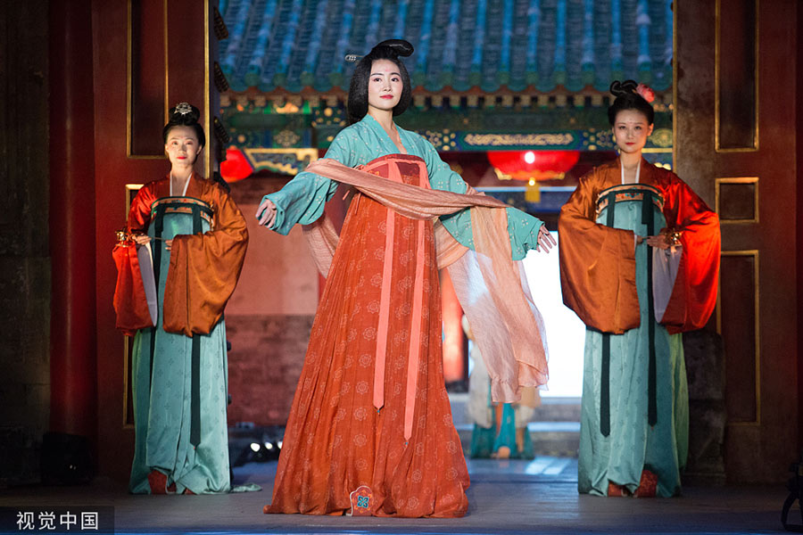 An intangible cultural heritage fashion show was held at Prince Gong's Mansion (Gong Wang Fu) in Beijing, June 6, 2017. [Photo/VCG]