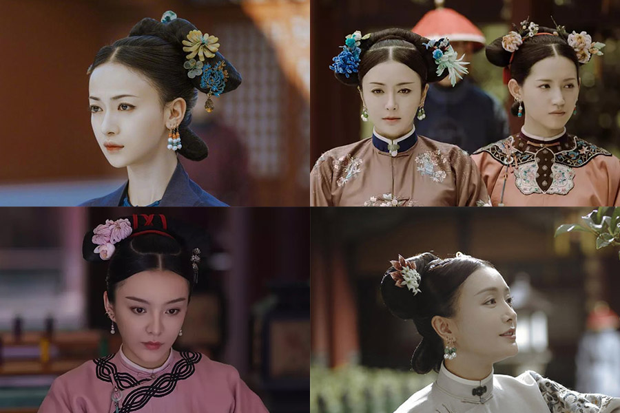 Characters in the TV drama Story of Yanxi Palace wear velvet flowers. [Photo/Mtime]