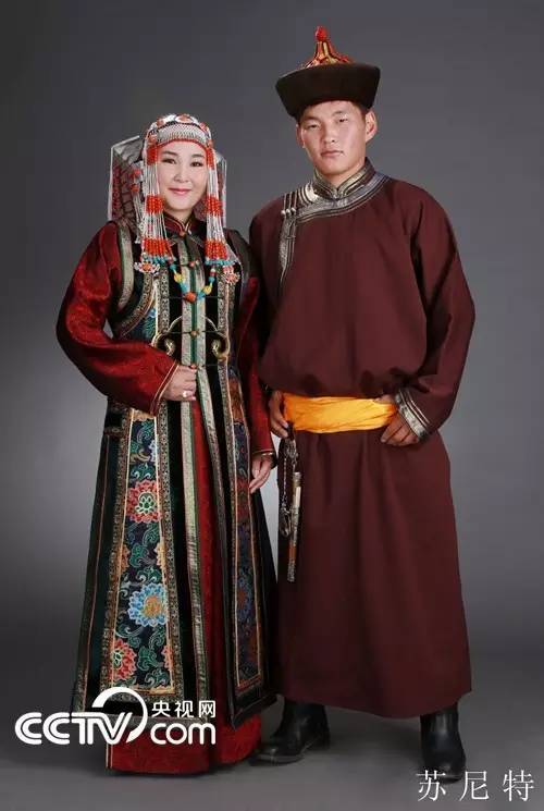 Sonid robes are loose and have no slits, matched with wide hems and horse-hoof sleeves. The number of purfles is the same as that of silk button loops, ranging from one to four. Men's robes are mainly dim colors, such as dark blue, purplish blue, ochre and dark purple; female robes are sky blue, grass green and dark green. In winter, men often wear eagle-shaped hats (made of fox skin) or round hats, while in spring and autumn they choose round hats with four ears. Women usually match the cone-shaped hats with a nap rim for their headgear. Leather boots are mostly for riding and cloth ones are used at home.