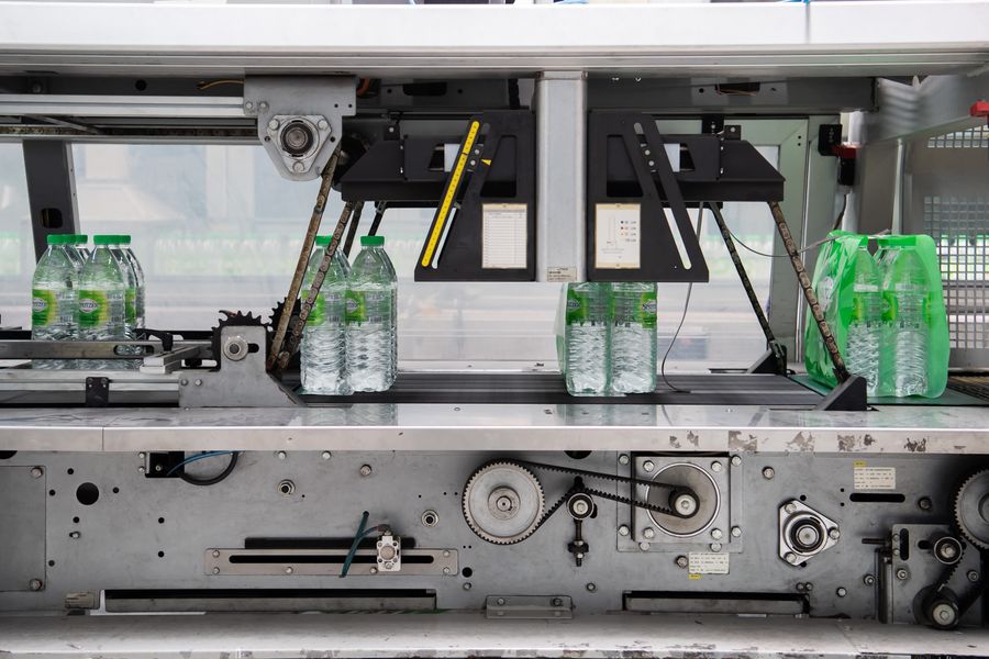 The production line is seen at Spritzer Natural Mineral Water Plant in Taiping, Perak, Malaysia, Oct. 21, 2019. (Xinhua/Zhu Wei)