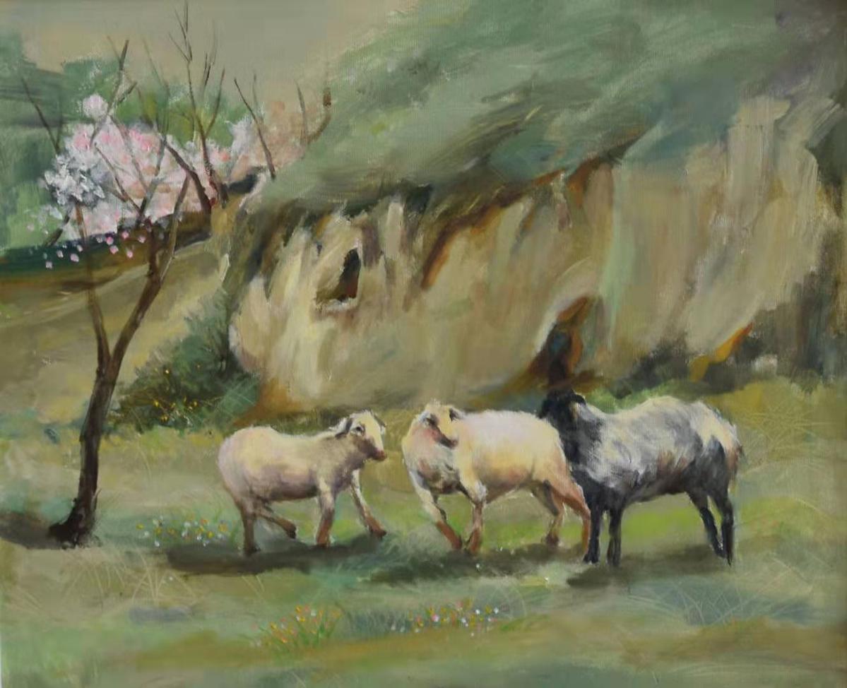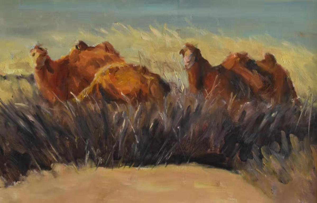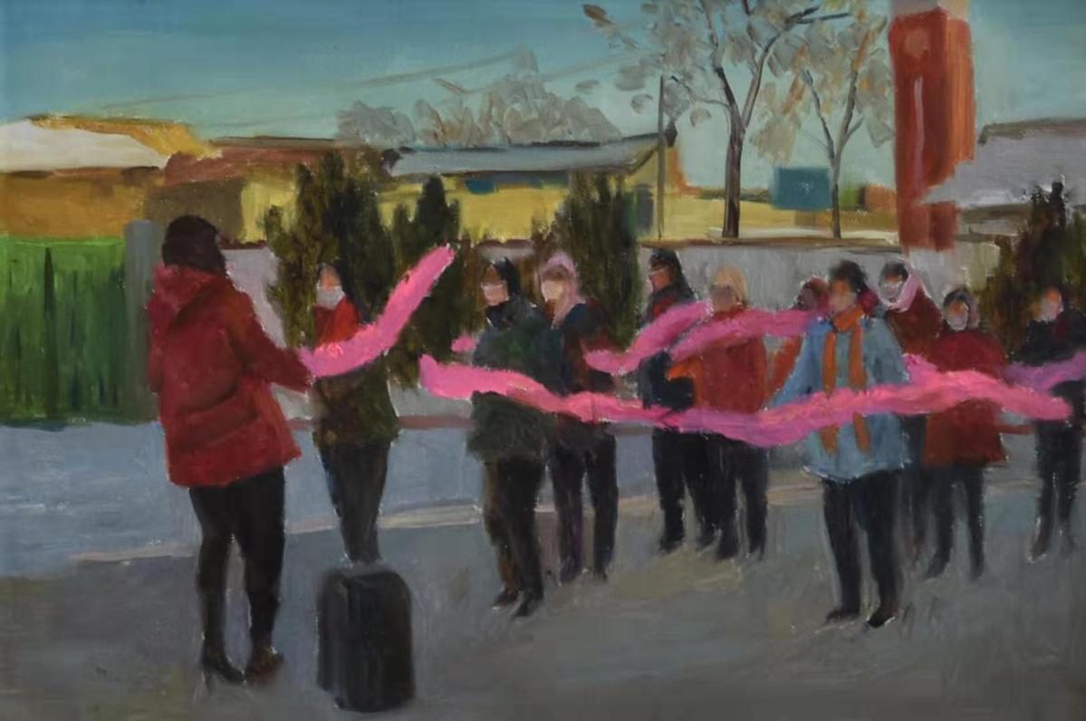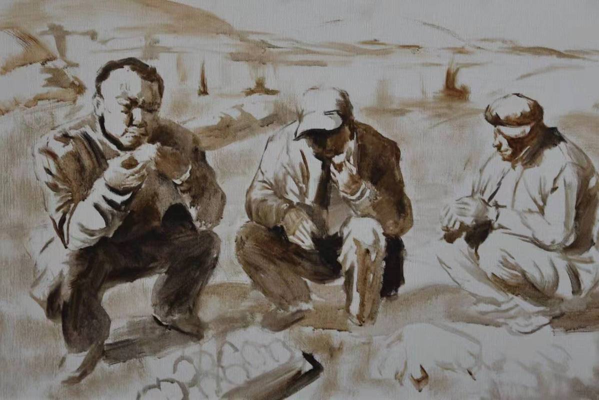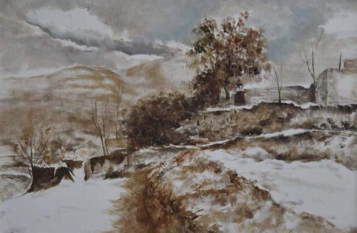 An oil painting created by Xue Fuli, who temporarily works at Nanchuan village in Xiji county in Northwest China's Ningxia Hui autonomous region to help the village rise above poverty and wants to record the scenes he has seen in the village and neighboring regions. [Photo provided to chinadaily.com.cn]