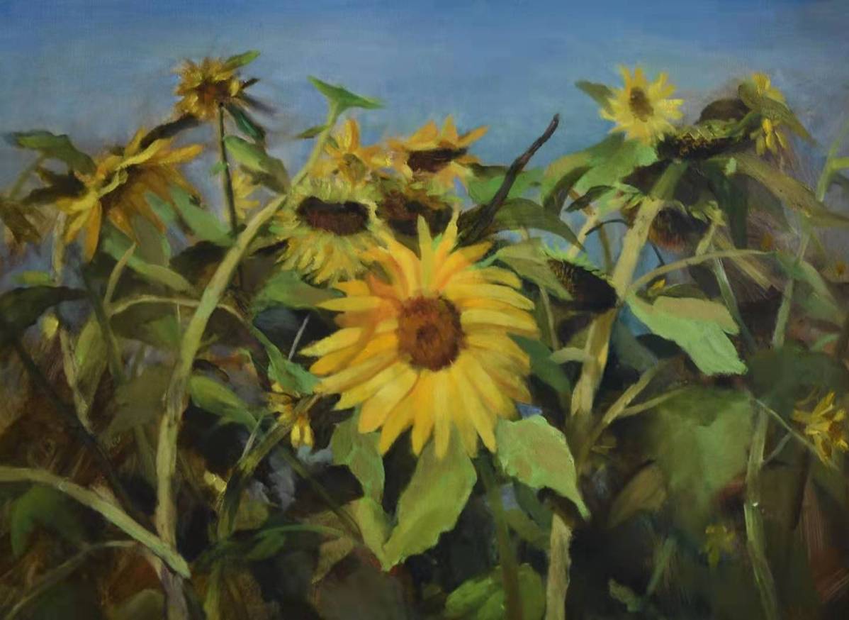 Xue, a public servant in the region, has created many oil paintings in his spare time that show scenes of the village's landscape and residents' work, lives and entertainment activities.