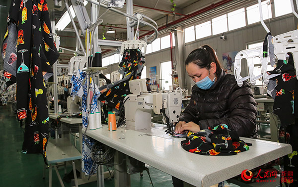 At a poverty alleviation industrial park in Mugala township, Hotan prefecture, the production lines of several clothing workshops have been running at full capacity since they started doing work amid the epidemic.