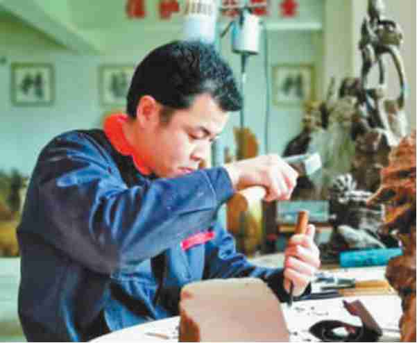 Living in Ziquejie village, Shuiche town, Xinhua county, Loudi city of central China, Xinhua county, Feng owns a woodcarving company named Xiaoxiang Wood Industry Company, which has four disabled apprentices and 16 employees from poor local households.