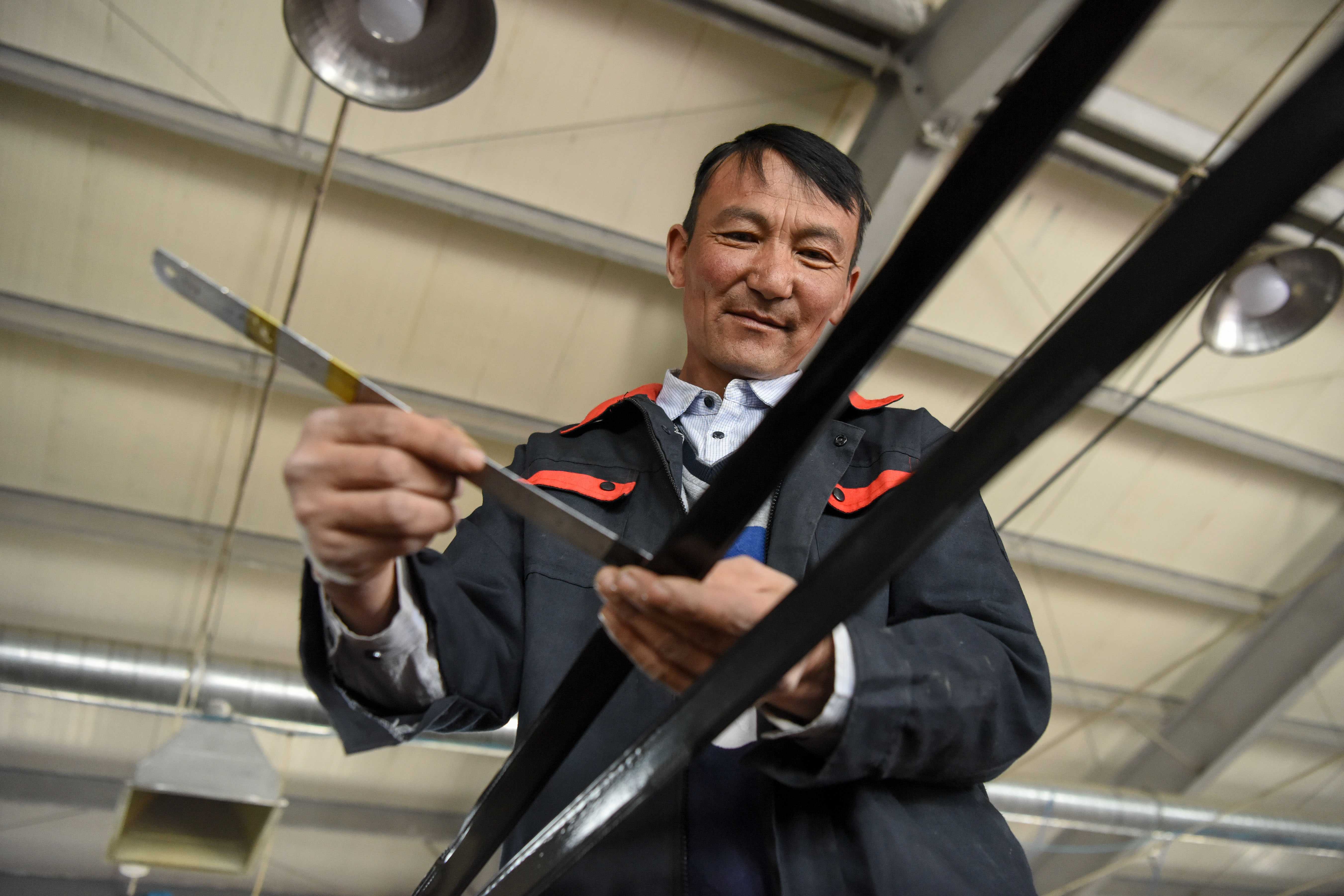 Polatinur Juandehr works in a factory in Qinghe County, April 14, 2020. (Xinhua/Ding Lei)