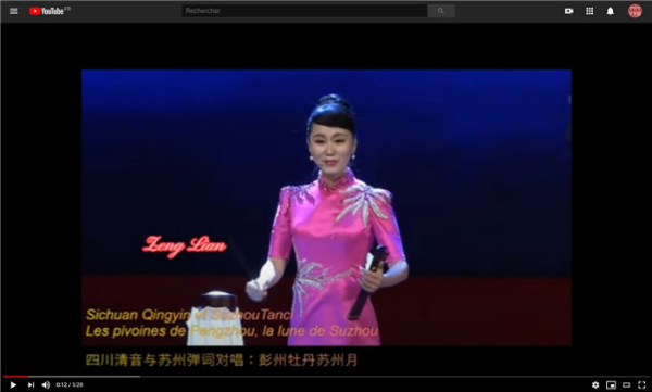 The first phase of the series of activities was launched with Sichuan ballad performing and Suzhou storytelling singing Pengzhou Peony Suzhou Moon. The program took part in the 12th Paris Chinese Quyi Festival held by China Cultural Center in Paris in 2019, and won the excellent repertoire award at the Quyi Festival. Qingyin is a national intangible cultural heritage project in China. During the performance, the actress sings in Sichuan dialect, using sandalwood and bamboo drums to control the rhythm. It was the most popular song in Sichuan area from 1930s to 1950s. Suzhou Tanci originated from Tao Zhen in the Yuan Dynasty and was popular in Jiangsu and Zhejiang provinces in the Qing Dynasty.