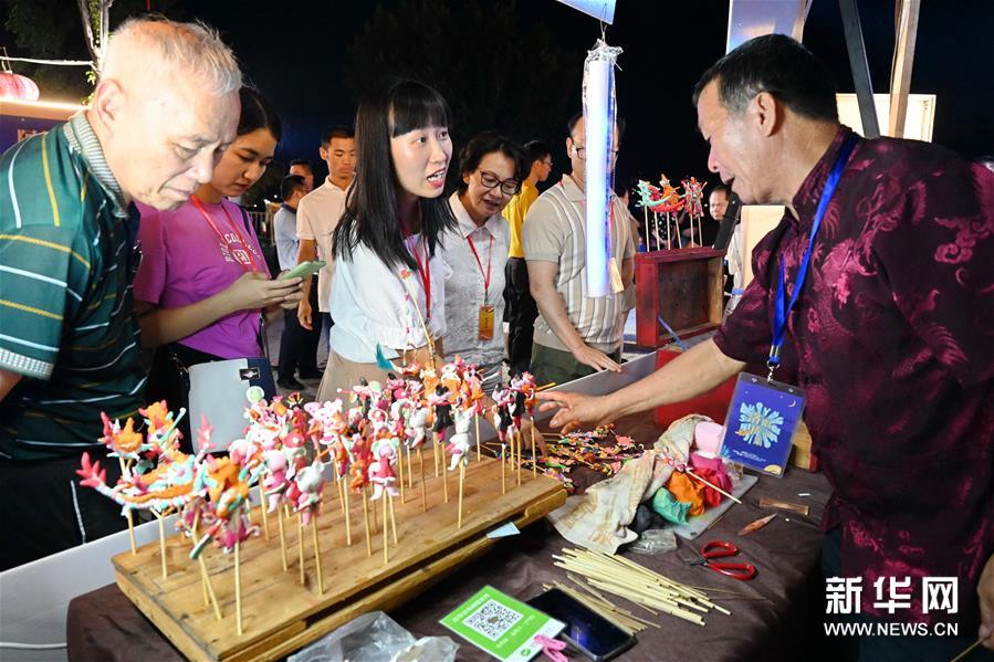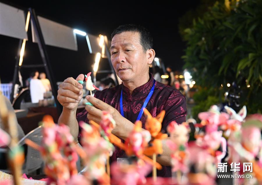 Intangible cultural heritages, such as dough figurines and traditional embroidery, have been exhibited by stall owners near Luoyang Bridge near Quanzhou, southeast China's Fujian province, helping to add new color to the region's night economy.