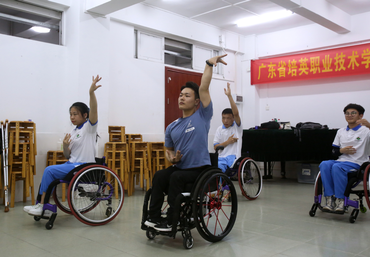 Members of the student wheelchair dancing team of Guangdong Peiying Vocational Technical School in Guangzhou practice often — and it has paid off.