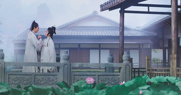 "In a scene about the two protagonists' wedding night, they toast drinks in a chamber with a circular window, with a full moon shining behind. The circles symbolize an auspicious beginning of their marriage," explains Zhang.