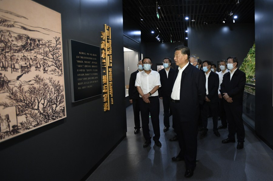 Chinese President Xi Jinping conducts field research on ethnic unity at the Chengde Museum during an inspection tour of Chengde in north China's Hebei Province, Aug. 24, 2021. (Xinhua/Li Xueren)