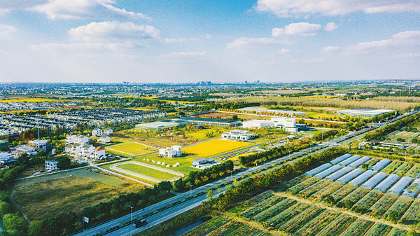 A bird's eye view of a facility in Jiaxing that features a commercialized detoxification research center for multiple varieties of plants.[Photo provided to China Daily]