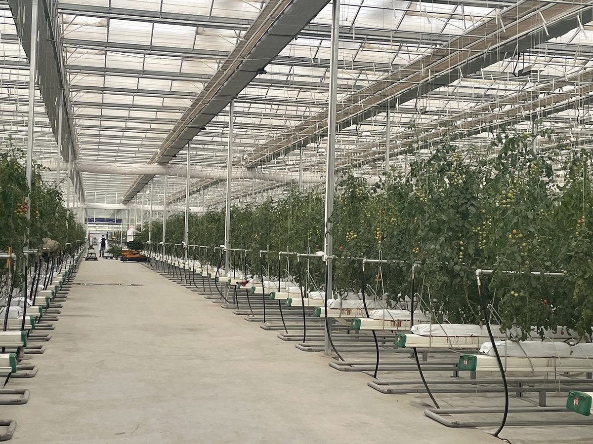 The intelligent multi-span greenhouses in the park cover 110,000 square meters, and each greenhouse is spread over 20,000 square meters.