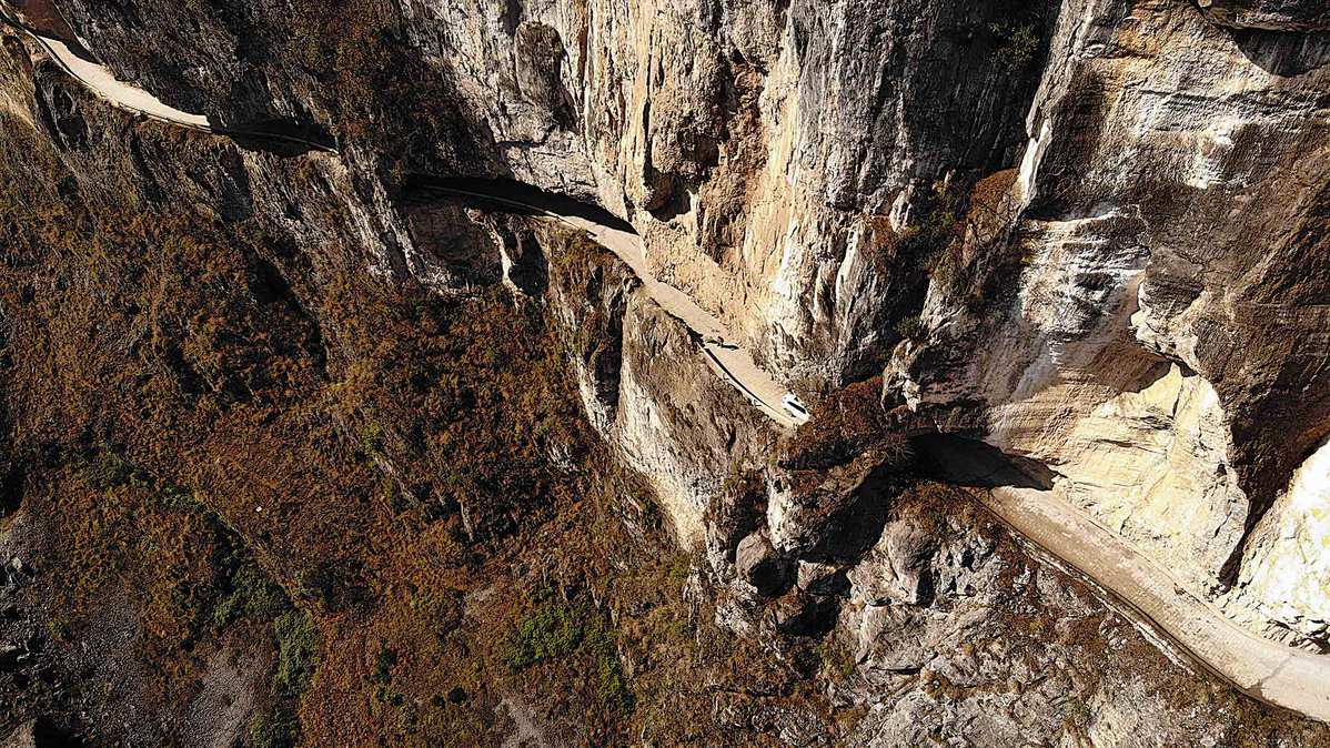 The road has a 470-meter-long section cut through cliffs. HAN XIANPU/FOR CHINA DAILY