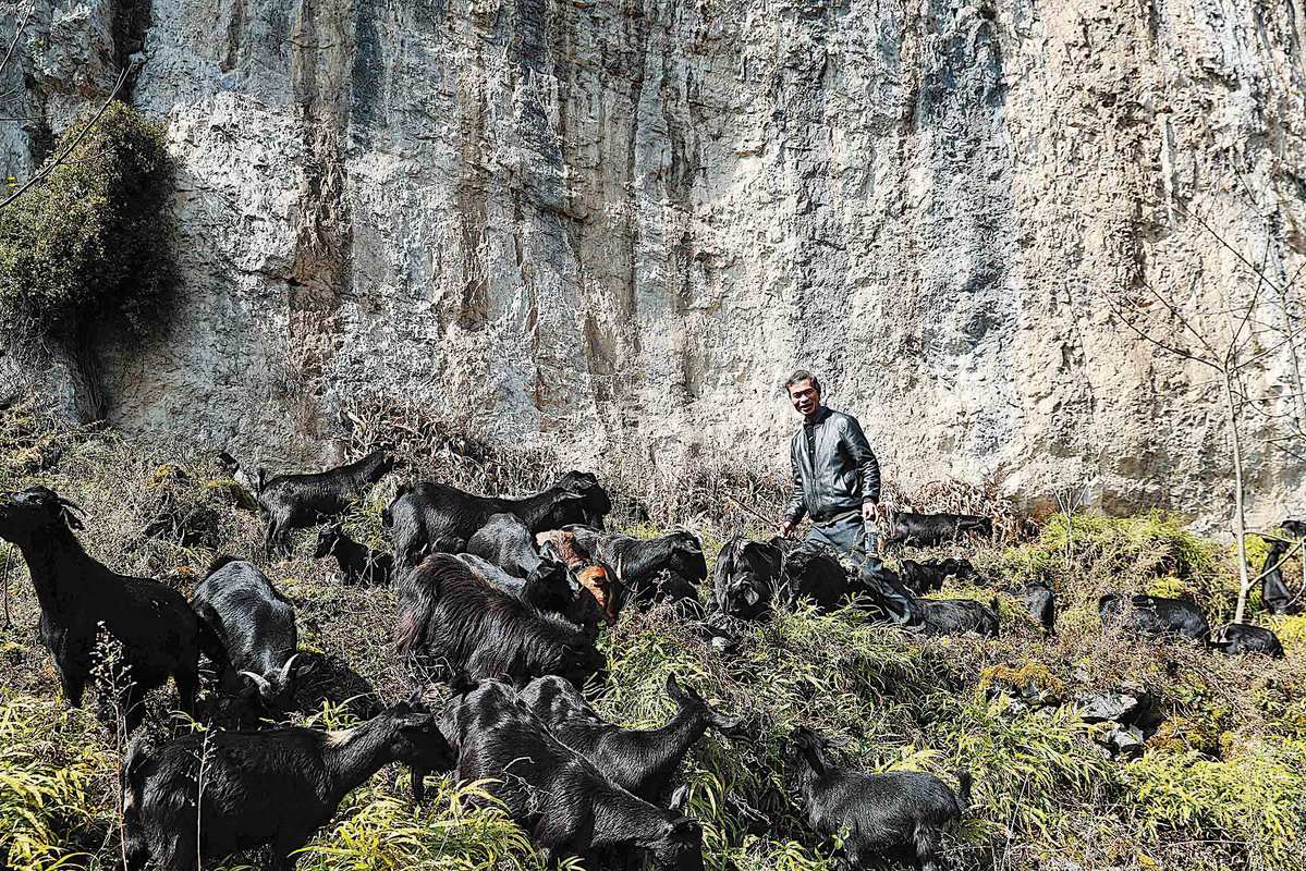 Huang herds goats on a hill in December last year. HAN XIANPU/FOR CHINA DAILY