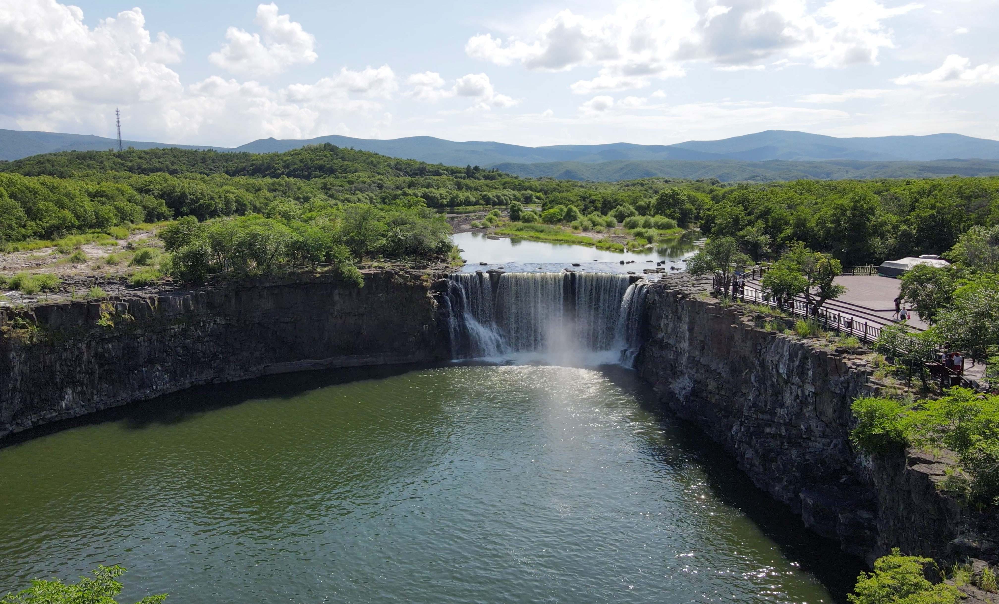 A photo shows the Diaoshuilou waterfall in the Jingpohu Global Geopark in Mudanjiang City, northeast China’s Heilongjiang Province. (Photo/Provided to People’s Daily Online)