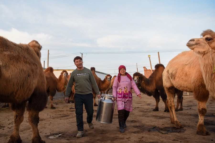 "They are all female camels, and each of them produces up to 3 kg of milk every day," said the 39-year-old, who can earn more than 1 million yuan per year selling camel milk.