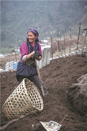 A Sherpa woman works in the field in Zhentang Town of Xigaze, Southwest China's Tibet Autonomous Region, Nov 26, 2021. [Photo/Xinhua]