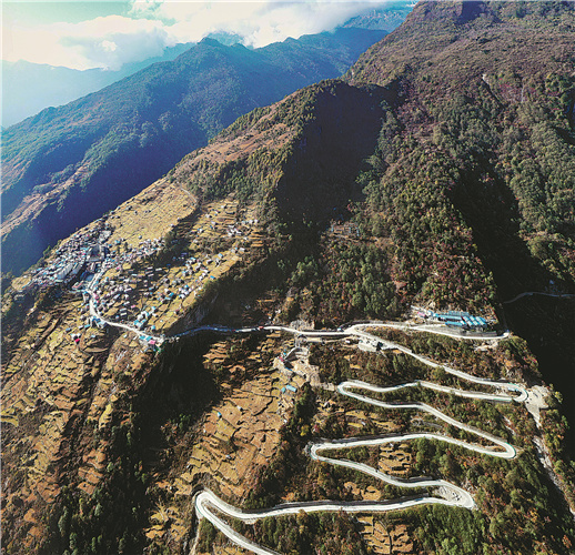 Sherpa women carry supplies uphill in Zhentang Town of Xigaze, Southwest China's Tibet Autonomous Region, Nov 24, 2021. [Photo/Xinhua]