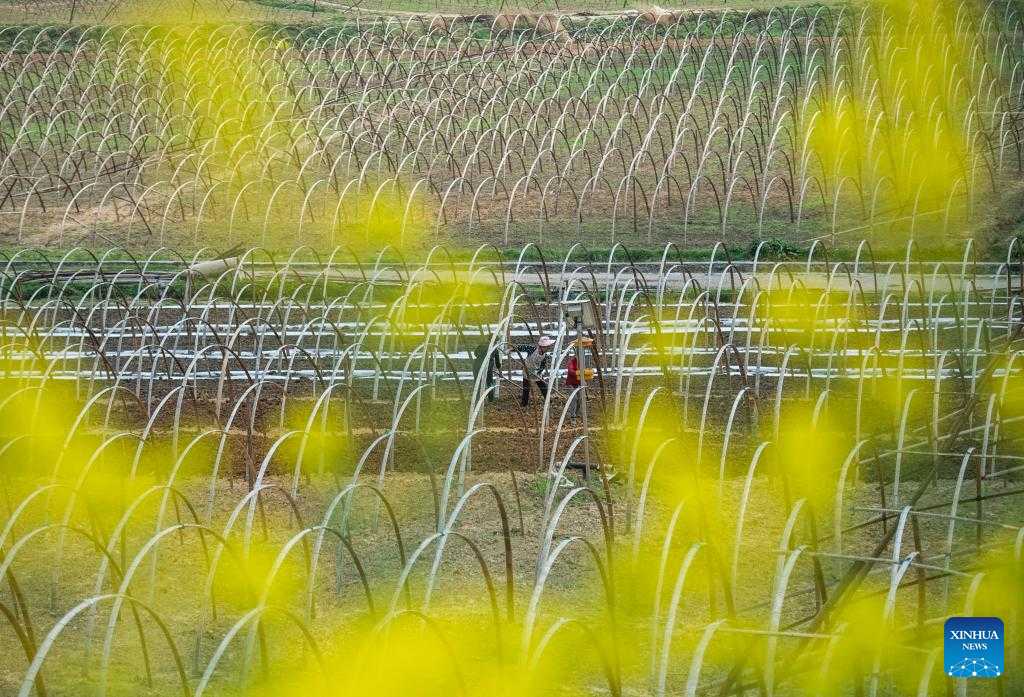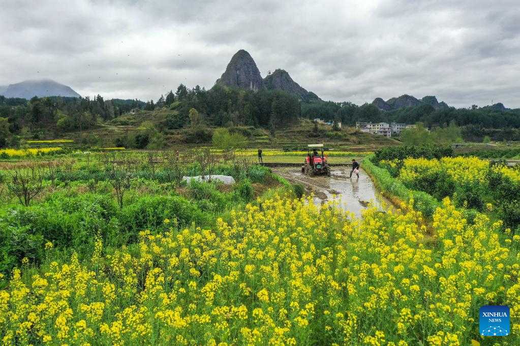 Farmers work in the field in Guangshun Town of Changshun County, southwest China's Guizhou Province, on the date of Chunfen, which falls on March 20, 2022. Chunfen, or spring equinox, is an important date for Chinese farmers. Not only is it one of the 24 solar terms on the Chinese lunar calendar that reflect changes in the seasons, but it also signals the start of one of the year's busiest farming periods. This year, Chunfen falls on March 20, and farms across the country are already a hive of activity. (Xinhua/Tao Liang)