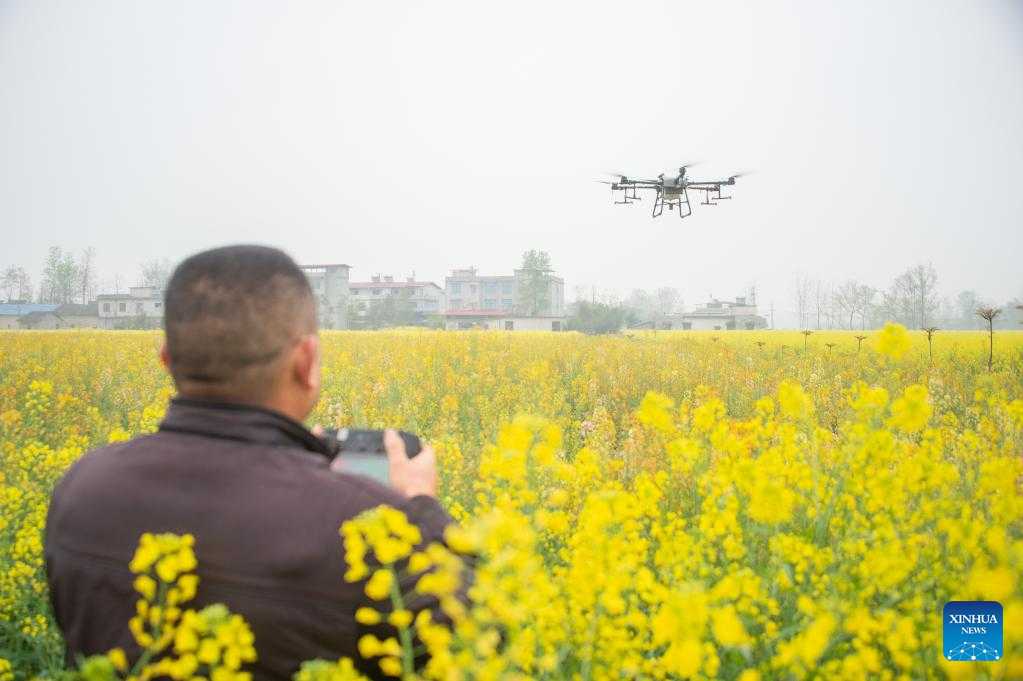 A farmer operates a drone in a field in Qingshan Town of Chongyang County, central China's Hubei Province, on the date of Chunfen, which falls on March 20, 2022. Chunfen, or spring equinox, is an important date for Chinese farmers. Not only is it one of the 24 solar terms on the Chinese lunar calendar that reflect changes in the seasons, but it also signals the start of one of the year's busiest farming periods. This year, Chunfen falls on March 20, and farms across the country are already a hive of activity. (Photo by Wu Zhizun/Xinhua)