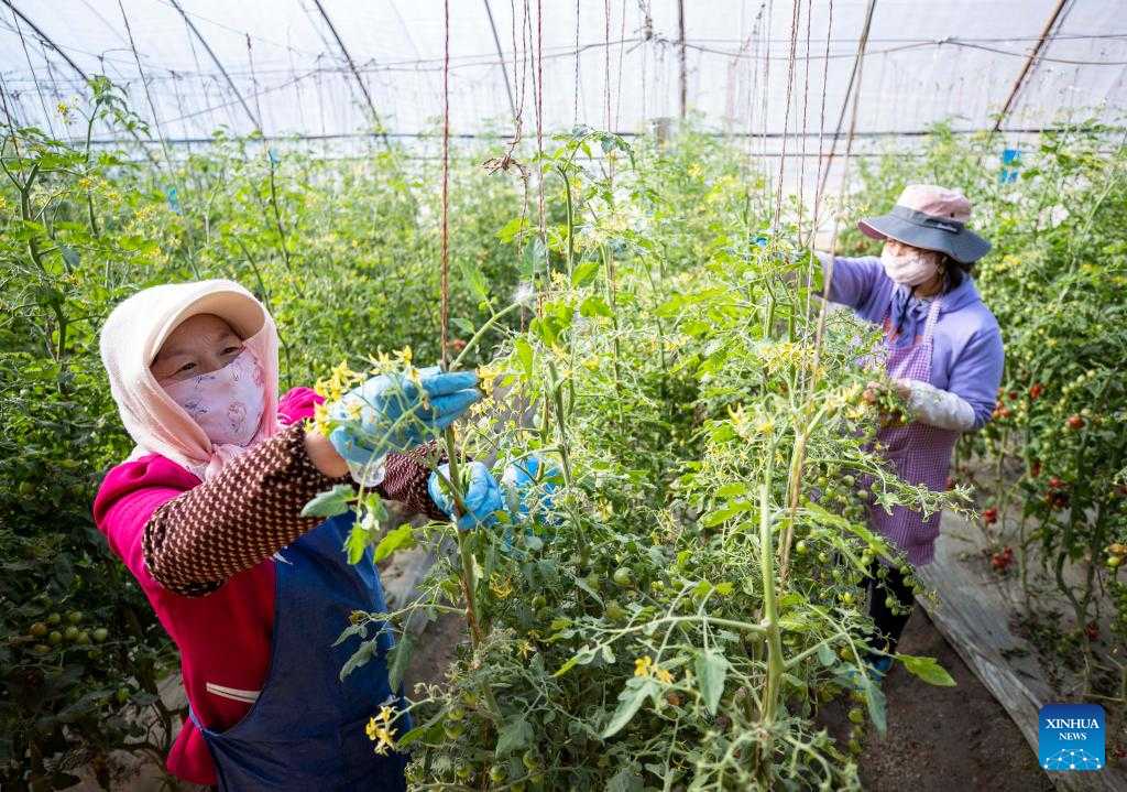 Farmers work in a greenhouse in Xigang Town of Yinchuan, northwest China's Ningxia Hui Autonomous Region, on the date of Chunfen, which falls on March 20, 2022. Chunfen, or spring equinox, is an important date for Chinese farmers. Not only is it one of the 24 solar terms on the Chinese lunar calendar that reflect changes in the seasons, but it also signals the start of one of the year's busiest farming periods. This year, Chunfen falls on March 20, and farms across the country are already a hive of activity. (Xinhua/Yang Zhisen)
