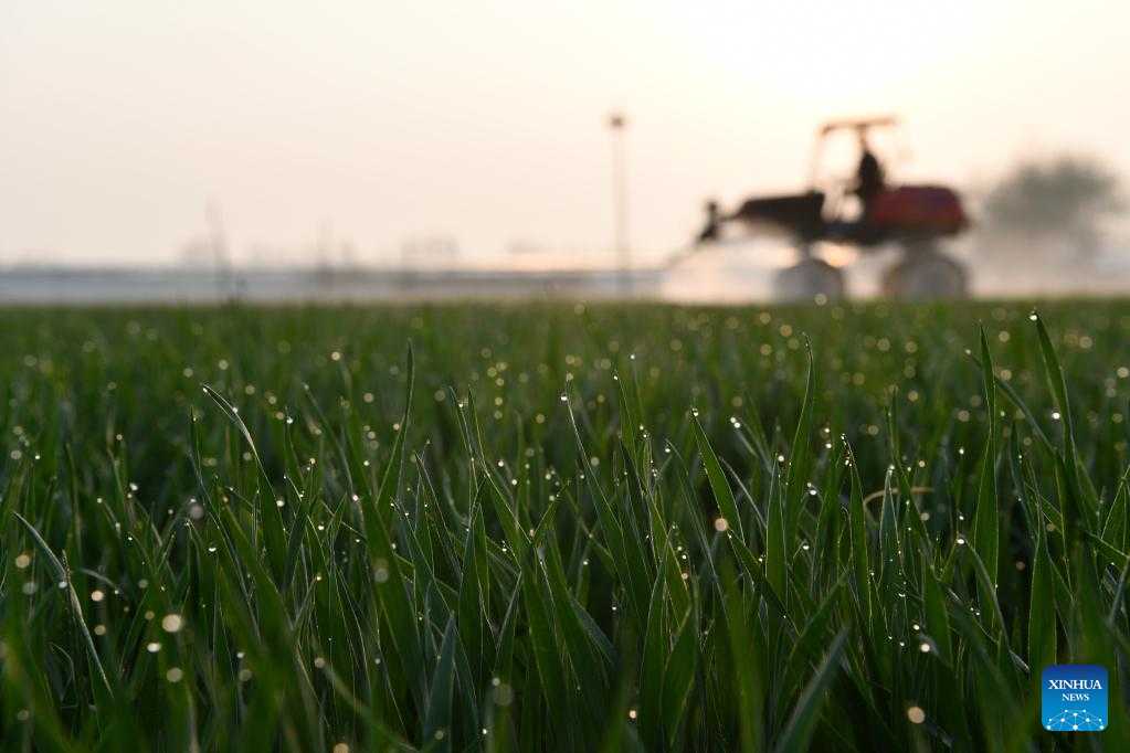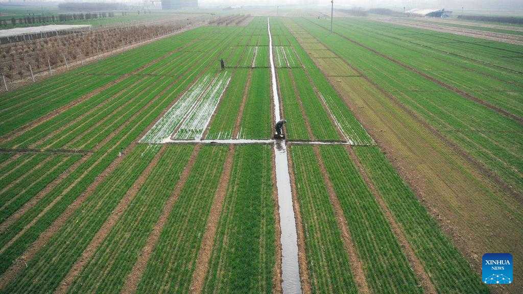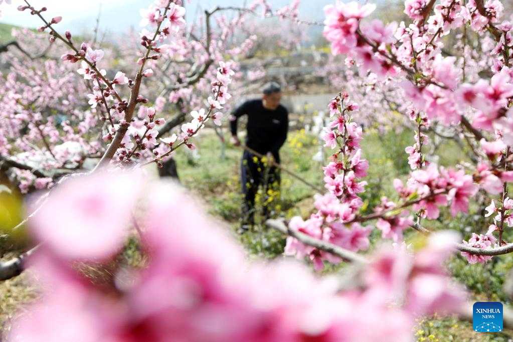 (220404) -- SHIJIAZHUANG, April 4, 2022 (Xinhua) -- A villager works in the fields in Nangao Village of Shijiazhuang, north China's Hebei Province, April 4, 2022. As the temperature gradually rises around the time of Qingming Festival, farming activities are in full swing across the country, from the north to the south. (Photo by Li Mingfa/Xinhua)