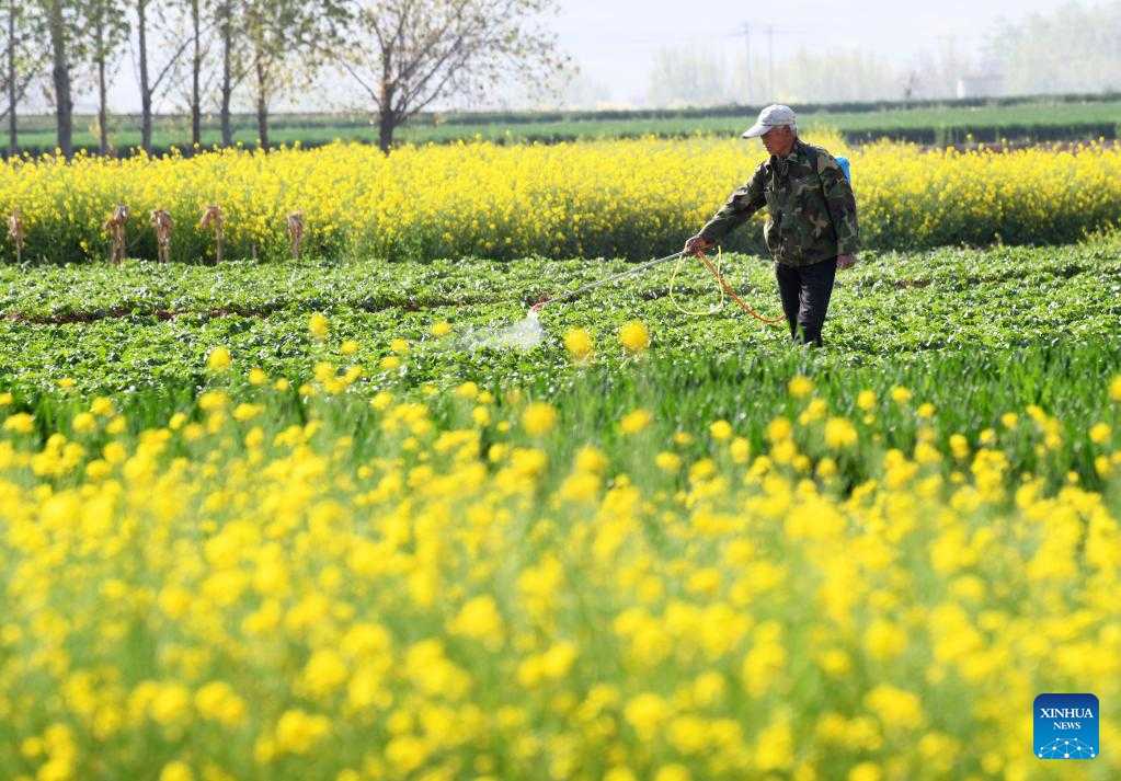 A farmer works in the fields in Dongjiazhuang Village of Pingyi County, Linyi City, east China’s Shandong Province, April 10, 2022. (Xinhua/Wu Jiquan)
