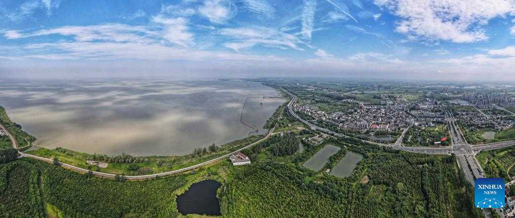 Aerial photo taken on July 20, 2021 shows a view of the Chaohu Lake in Hefei City, east China's Anhui Province. As the fifth-largest freshwater lake in China, Chaohu Lake is known as the "kidney" of the Yangtze River.