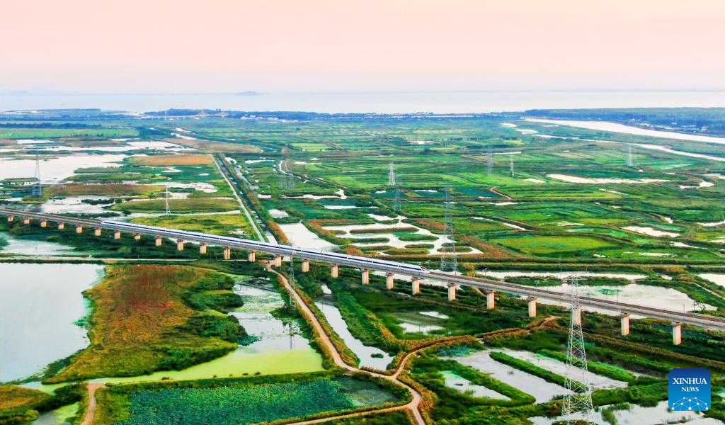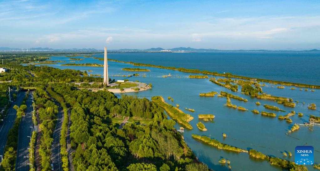 Aerial photo taken on Sept. 6, 2022 shows a view of a wetland park around the Chaohu Lake in Hefei City, east China's Anhui Province. As the fifth-largest freshwater lake in China, Chaohu Lake is known as the "kidney" of the Yangtze River.