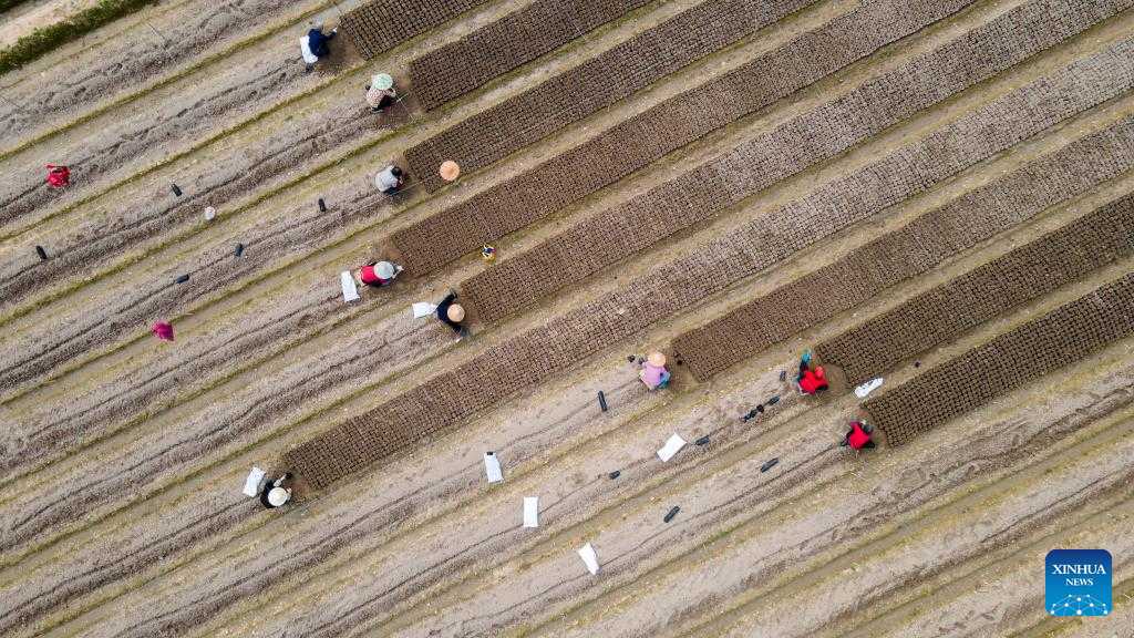 Farmers work in the field in Jiaji Town of Qionghai City, south China's Hainan Province, Feb. 19, 2023. In early spring, as temperatures gradually rise, farmers across the country are actively engaged in spring ploughing and preparations for farming activities. (Photo by Meng Zhongde/Xinhua)
