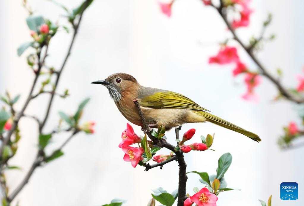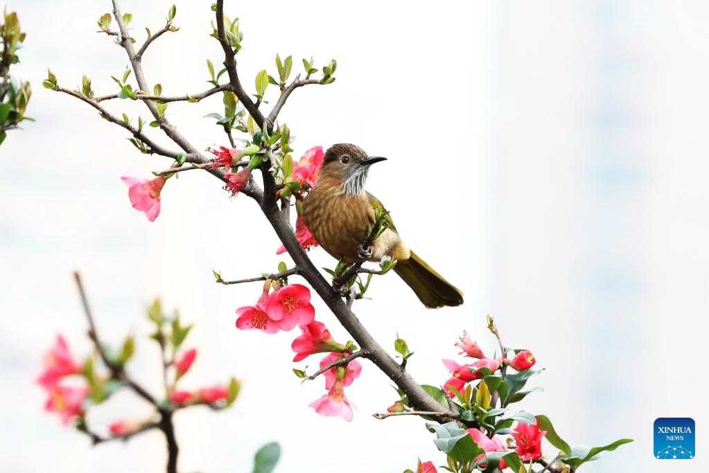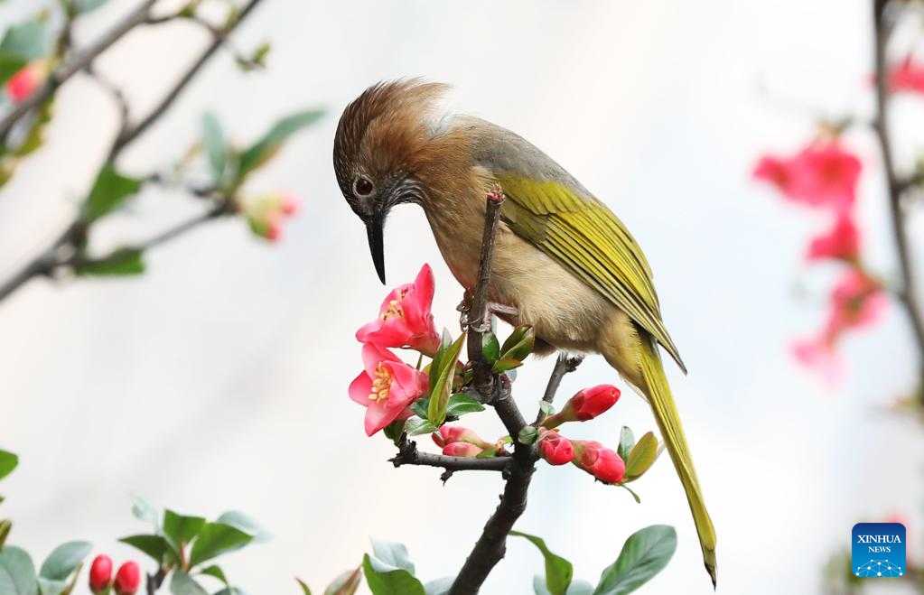 A mountain bulbul perches on a tree branch at Dazhaizi park in Dazhou, southwest China's Sichuan Province, Feb. 27, 2023. (Photo by Zeng Meng/Xinhua)
