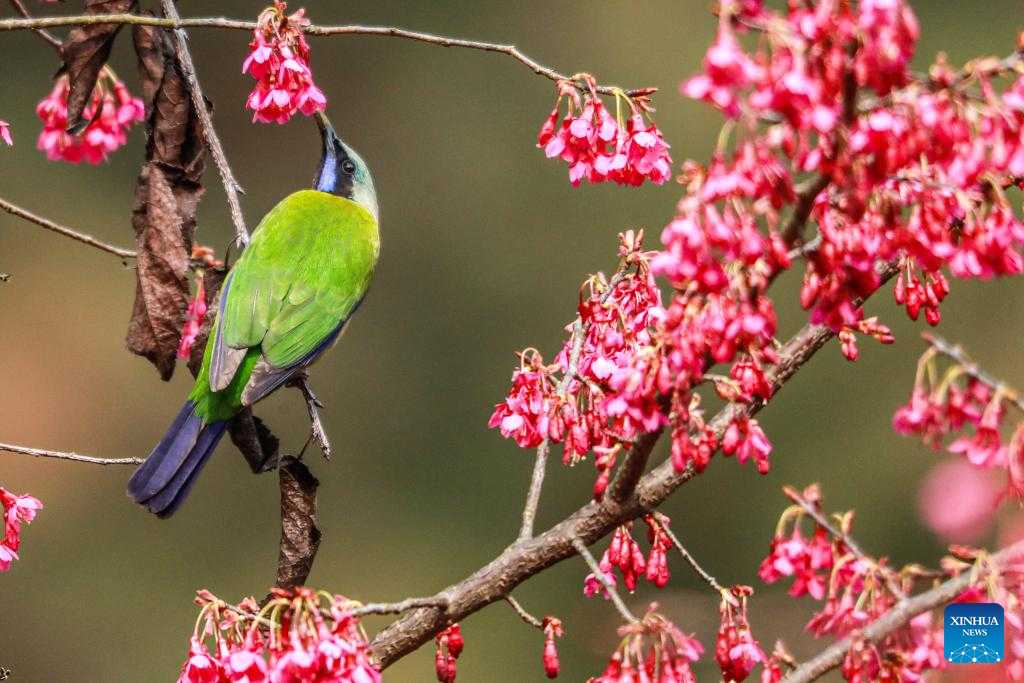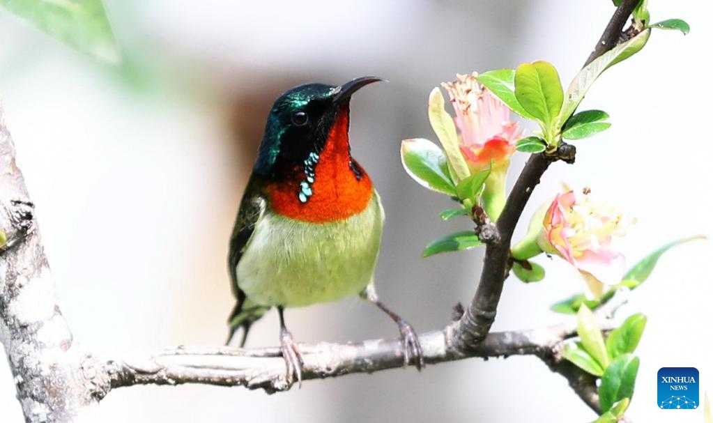 A sunbird perches on a tree branch at Dazhaizi park in Dazhou, southwest China's Sichuan Province, Feb. 27, 2023. (Photo by Zeng Meng/Xinhua)
