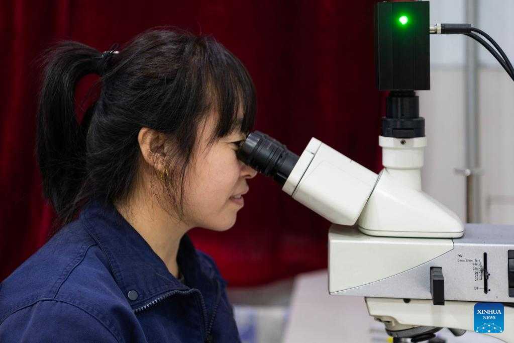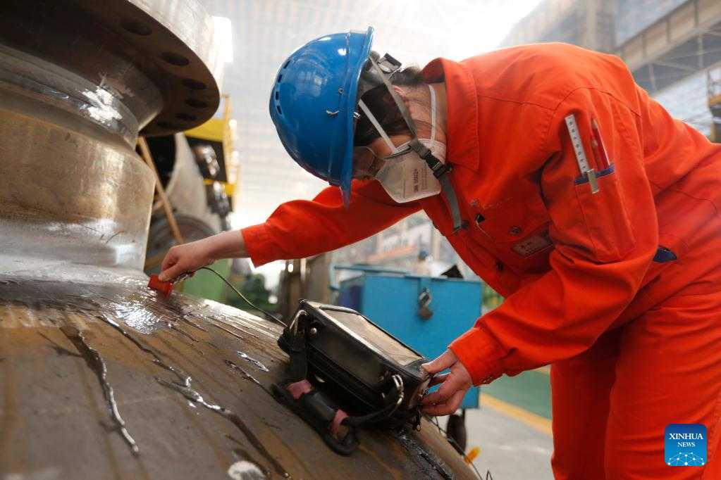 Flaw detector Li Hong works at Harbin Boiler Company Ltd. of Harbin Electric Corporation in Harbin, northeast China's Heilongjiang Province, March 6, 2023. Enterprises in Heilongjiang Province, an old industrial base in northeast China, have been making headway towards the goal of making a good start in the first quarter of 2023.