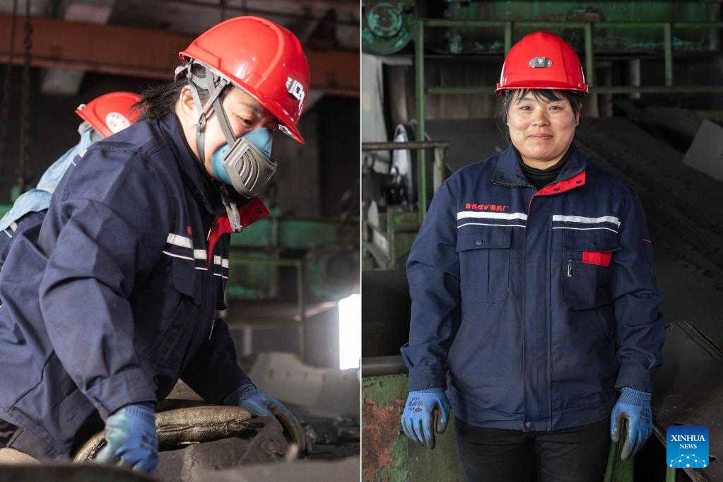 This combo photo shows worker Qu Zhaoxiang working (L) and posing for a photo at a mining company in Qitaihe, northeast China's Heilongjiang Province, March 7, 2023. Enterprises in Heilongjiang Province, an old industrial base in northeast China, have been making headway towards the goal of making a good start in the first quarter of 2023.