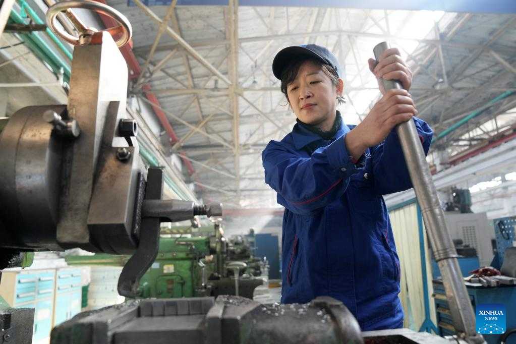 Computer numerical control (CNC) machinist Ge Dan is at work at Harbin Turbine Company Limited in Harbin, northeast China's Heilongjiang Province, March 7, 2023. Enterprises in Heilongjiang Province, an old industrial base in northeast China, have been making headway towards the goal of making a good start in the first quarter of 2023.