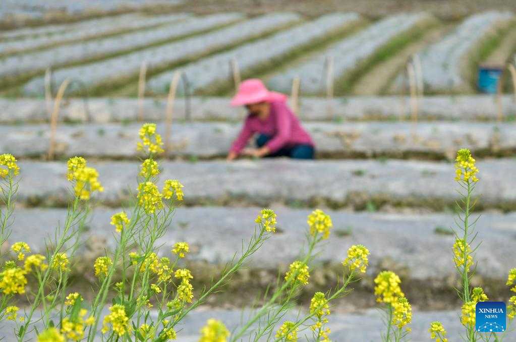A farmer works in a field in Tuanjie Village of Baini Township in Yuqing County, Zunyi City, southwest China's Guizhou Province, April 4, 2023. Around the time of Qingming Festival which falls on April 5 this year, farmers across the country are busy with farm work.(Xinhua/Zhou Lei)