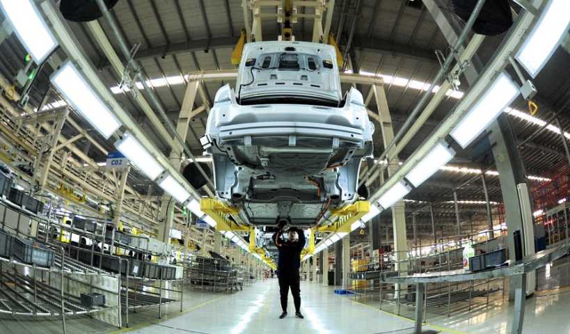 An employee works at the general assembly workshop of Huanghua company of BAIC Motor Co., Ltd, in Huanghua, north China's Hebei Province, Dec. 21, 2019. (Xinhua/Mu Yu)