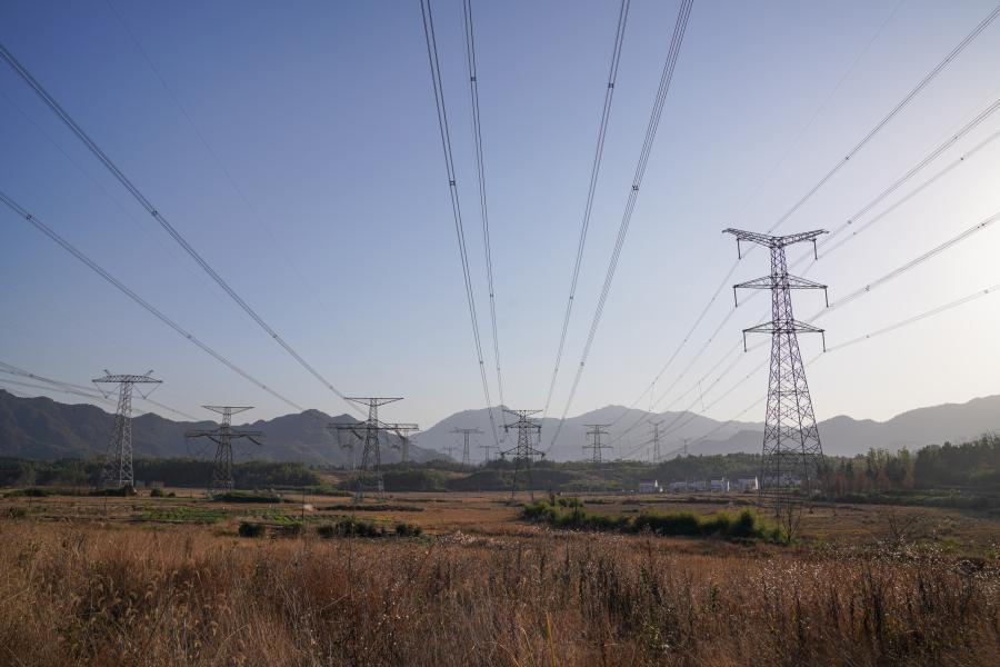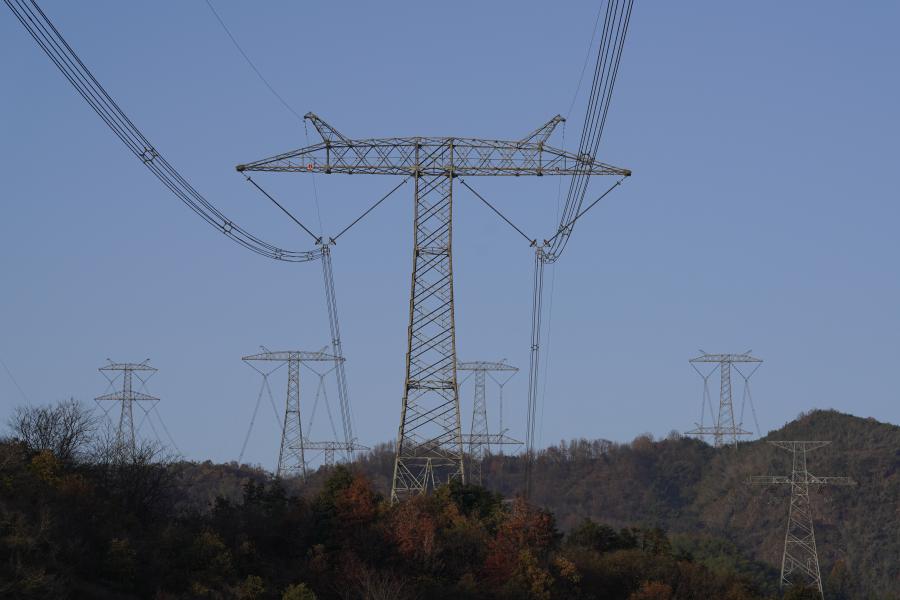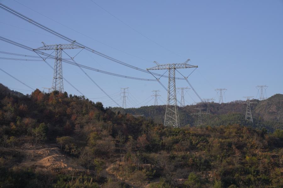 As a key energy transmission link in China's west-to-east power transmission program, Anhui Province delivers clean electricity from the west to the Yangtze River Delta with high efficiency. Multiple transmission lines have converged here to form a dense transmission channel in order to reduce the impact of UHV transmission lines on the natural environment. With the help of 5G technology, technicians at the Jiuhua UHV dense transmission channel in Chizhou can conduct real-time maintenance using drones and satellite positioning to ensure smooth electricity transmission along one of China's most important power lines.