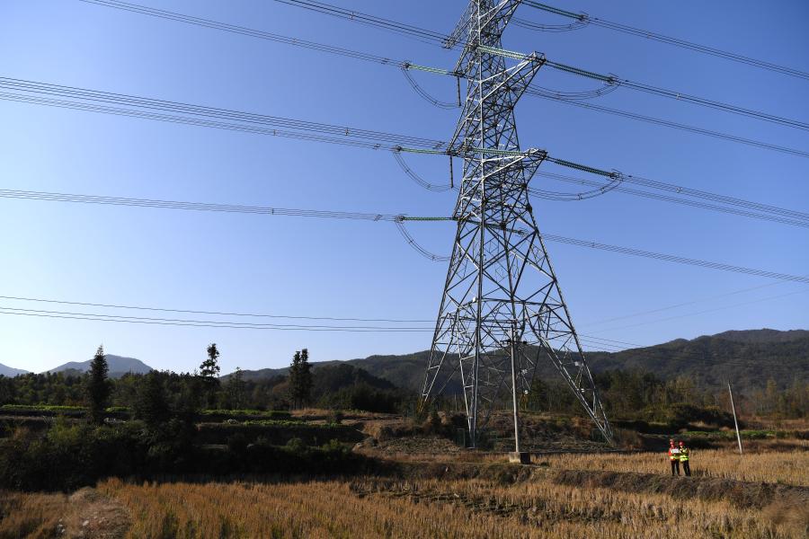Photo taken on Nov. 30, 2021 shows the Jiuhua UHV dense transmission channel in Chizhou, east China's Anhui Province, Nov. 30, 2021. (Xinhua/Liu Junxi)