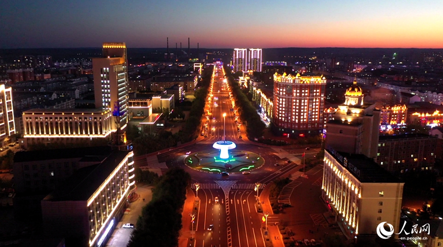 Night view of Heihe, located in northeast China’s Heilongjiang province bordering Russia’s Blagoveshchensk. (Photo/People’s Daily Online)