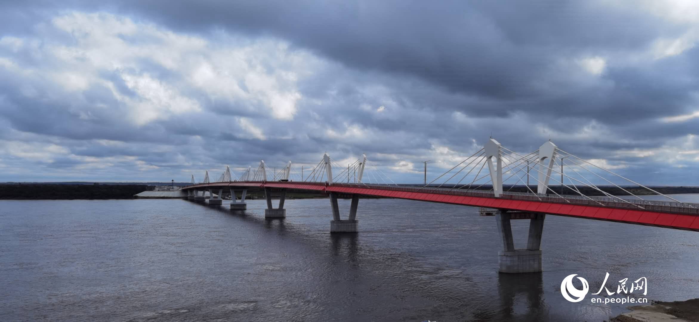 Photo taken on Sept. 23, 2020 shows the first highway bridge connecting Heihe, Heilongjiang province, with the Russian city of Blagoveshchensk across the Heilongjiang River. (People’s Daily Online/Xian Jiangnan)
