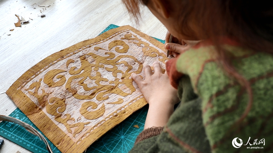 Tao Dandan is an inheritor of the intangible cultural heritage of birch bark culture. (Photo/People’s Daily Online)