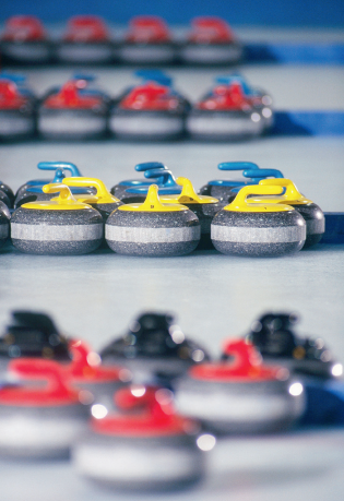 一盘完整棋局,要具备棋子、棋盘、棋手,这样看来,观赏一场冰壶比赛就形象得多了。棋子,也就是冰壶。标准的冰壶由壶柄和壶身组成,标准直径30厘米,高11.5厘米,重19.1公斤。壶体是由不含云母的花岗岩制作而成,这种石材只在苏格兰西部海域的克里格岛产出。石材虽然产自克里格,但要将其运送至距离该岛50公里外的南艾尔郡加工厂才能生产成冰壶成品。之所以只能选用这种石材,是因为运动过程决定了冰壶既要足够坚硬,又要保证其在低温条件下不会因撞击而破裂。壶柄是后来才出现的,早期人们只是在石壶表面抠出类似于保龄球上一样的抓握孔,但并不利于平面投掷。加上了壶柄后,才能更加方便地控制投掷时的角度和和力度。