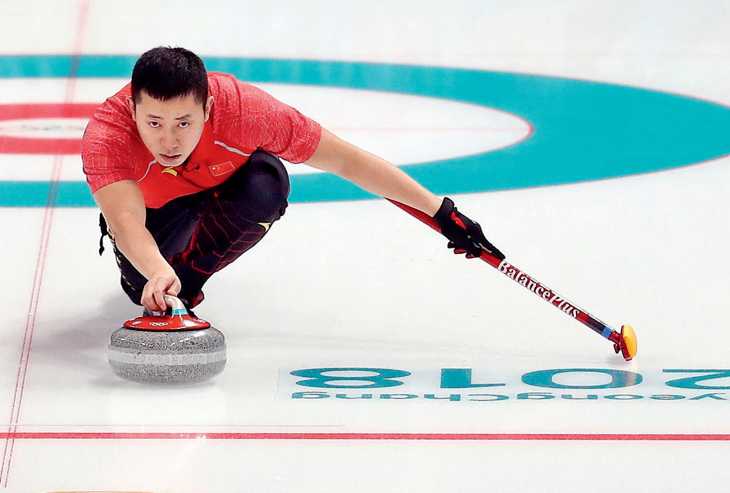 2018年2月8日,韩国平昌冬奥会江陵冰壶中心,中国混双选手巴德鑫正在做掷壶准备,这场比赛,他与王芮组合迎战2017年世锦赛冠军瑞士队,双方苦战8局后打成平手,加时赛中国队以2分遗憾告负。这也是冰壶混双第一次成为冬奥会正式比赛项目