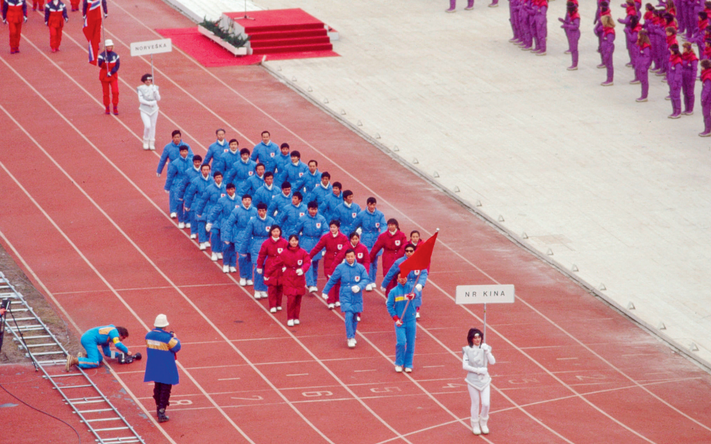 1984年2月8日,在第14届萨拉热窝冬奥会开幕式上的中国代表团