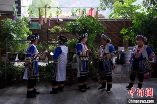 图为泸水市傈僳民族民间艺术团成员身着盛装准备演出。 康平 摄
