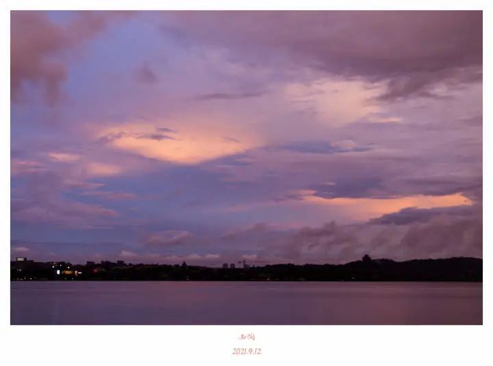 去年9月12日,有台风要来,郑建华去西湖边闲逛、拍摄晚霞,结果整个人都被突如其来的一场雨浇透了。但是被淋成落汤鸡的他,却盯着天空挪不开眼,因为那天的晚霞特别惊艳,赶紧用相机记录下来。“能拍到难得一见的画面,虽然被淋也值了”。